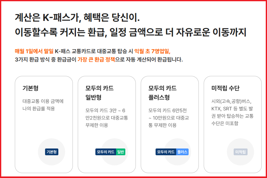 | 구분 | 기존 K패스 | 모두의카드 |