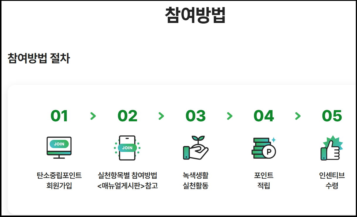 이 홈페이지는 탄소중립 실천포인트제의 안내와 참여를 위한 중심 허브로, 국민이 쉽고 편리하게 가입·참여·포인트 확인·인센티브 수령까지 한 번에 이용할 수 있도록 설계되어 있습니다.